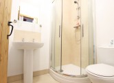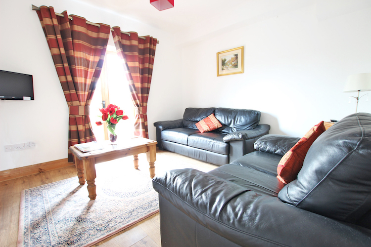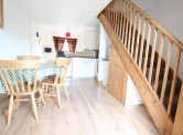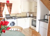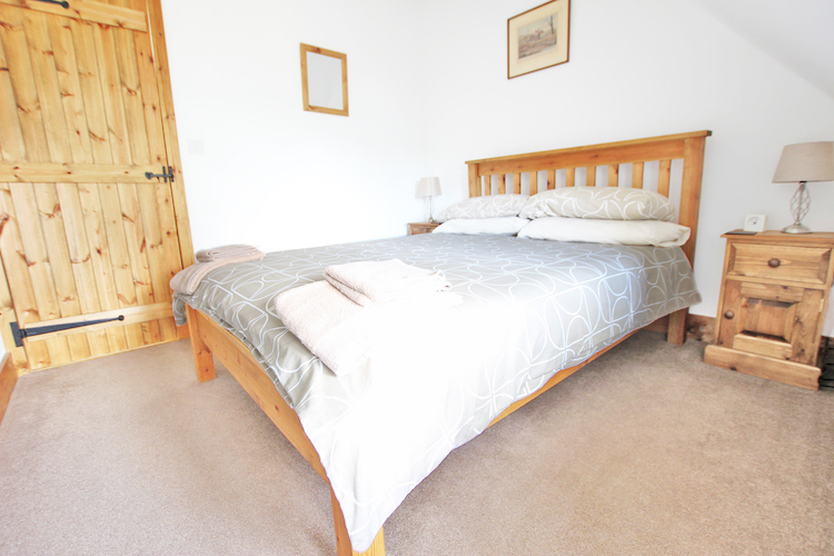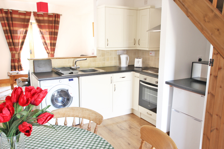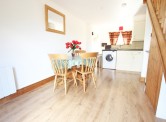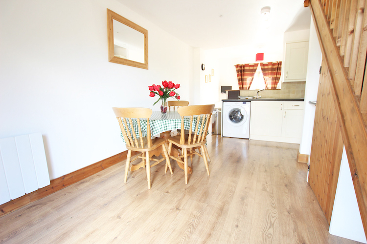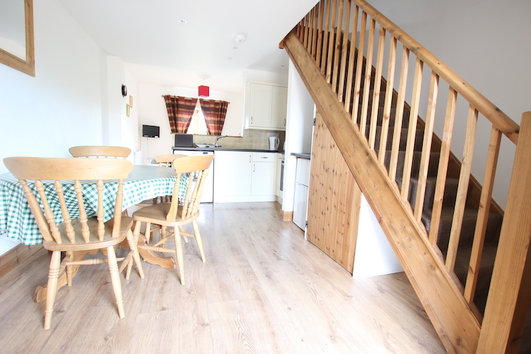 Stepping through the entrance you are greeted with an open plan kitchen, dining and lounge area. The kitchen is equipped with the necessities and the lounge has a flatscreen television with DVD and Freeview, french doors lead out to a patio and garden area. On the first floor there is a full shower-room including WC, shower enclosure and basin as well as an airing cupboard with additional hanging space. The master bedroom includes a double bed, chair, wardrobe and bedside tables and a second bedroom with single oak bed and put-up bed if required to sleep 4.