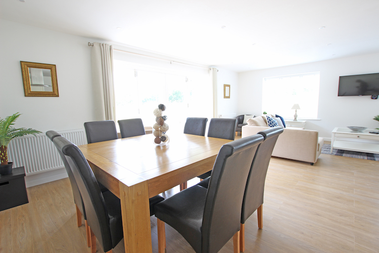 Eine große Eingangshalle öffnet sich in die offene Küche, Ess- und Aufenthaltsraum, die Treppe schält nach rechts ab, ein Hauswirtschaftsraum mit im Erdgeschoss WC ist geradeaus und ein großes Doppel- / Super-König * Schlafzimmer mit en-suite Badezimmer ist aus nach links. Dieses große Schlafzimmer im Erdgeschoss verfügt über TV, Einbauschrank und Kommode sowie ein en-suite Badezimmer mit 1,7m Dusche, Bad, WC und Waschbecken. Die Küche ist gut ausgestattet und verfügt über eine große Frühstücksbar, vollhohe Kühlschrank und separater Gefrierschrank, Backofen und Herd sowie einen Geschirrspüler. Der große Esstisch bietet Platz für bis zu 8 Personen und bequem Platz für die gleiche in der Lounge, die auch verfügt über 43in Smart TV und Blick über das Fahrerlager. Die großen zweiflügeligen Türen öffnen sich zum Patio-Bereich, der das Innere im Inneren brinkt und ist ein großartiges Merkmal für diesen Raum. Im Obergeschoss befindet sich das Master-Schlafzimmer mit der gleichen Aussicht, 43in Digital-TV, en-suite Duschraum mit Dusche, WC sowie „seine und ihre“ Becken. Der dritte Twin / Super-King * Zimmer verfügt über TV, Einbauschrank sowie ein en-suite Duschraum mit Dusche, WC und Waschbecken. Es gibt auch ein Büro im Obergeschoss mit Schreibtisch. * Das Erdgeschoss und das dritte Schlafzimmer sind mit zwei Einzelbetten ausgestattet, die von Ihnen zusammengeschlossen werden können, um ein Super-King-Bett zu machen.