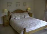Das Ferienhaus ist eingeschoßig und hat einen großen Wohn-/Ess und -Küchenbreich mit Flügeltüren, die direkt auf die private, möblierte Terrasse führen. Die Eichen-Einbauküche verfügt über Spülmaschine und Waschmaschine. Es gibt ein Doppelschlafzimmer mit Kingsizebett sowie ein Zweibettzimmer, das auch als zweites Doppelzimmer gebucht werden kann. Die Betten sind aus Eichenholz. Beide Schlafräume sind geräumig und geschmackvoll möbliert. Das voll geflieste Badezimmer hat eine Badewanne mit Handbrause, WC und Waschbecken.